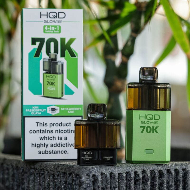 • Refillable pods (compatible HQD Glow Air 70K pods)