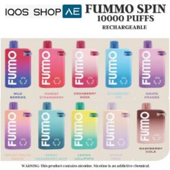 The FUMMO Spin Disposable 10000Puffs 20MG Rechargeable Vape, available in Dubai, UAE, is a robust and long-lasting vaping device designed for extended use. Featuring a rechargeable 550mAh battery, this vape offers a significant 20ml e-liquid capacity, delivering a nicotine strength of 20mg/ml.