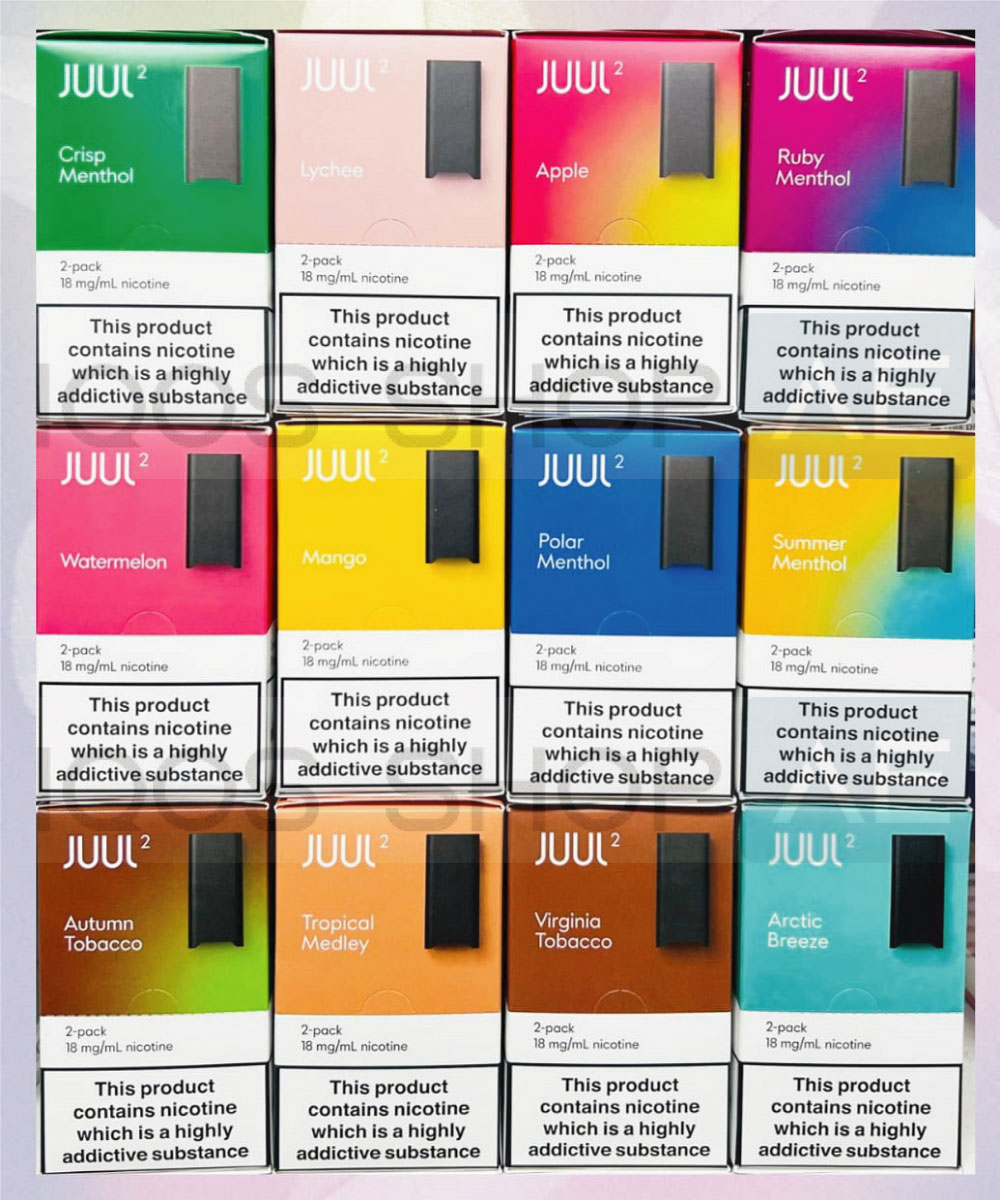 • Total nicotine content: ~21.6 mg/JUUL2 pod.