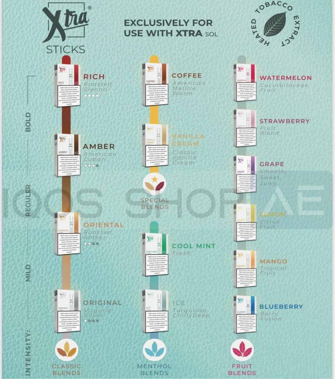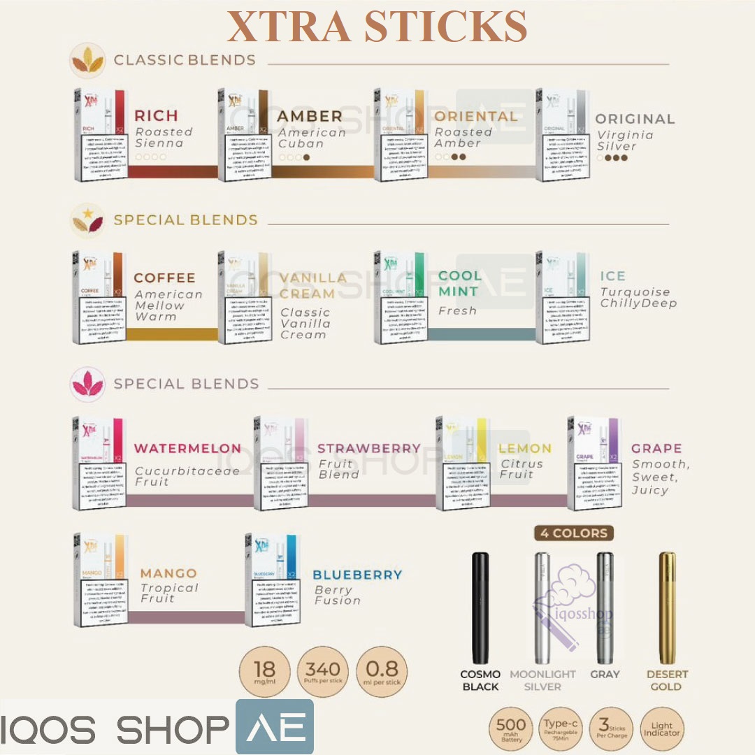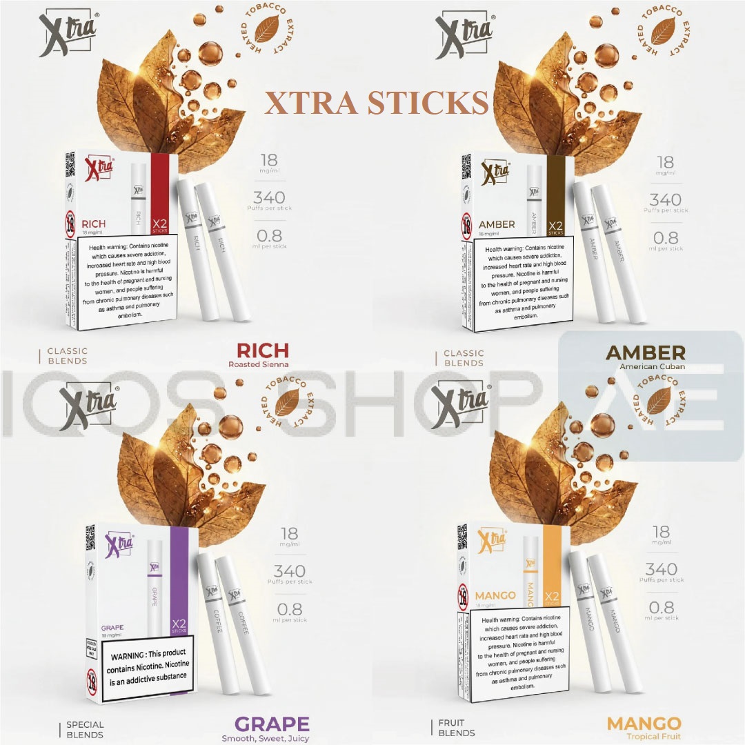 With 14 unique flavors across classic tobacco, menthol, and fruit blends, XTRA Sticks give users a wide variety of taste options. Each stick is optimized to deliver consistent flavor and smooth draws, making it an excellent alternative for adult smokers looking for modern heated tobacco technology. Each stick contains 18 mg nicotine, provides approximately 340 puffs, and holds 0.8 ml of tobacco blend, ensuring a balanced and enjoyable experience.